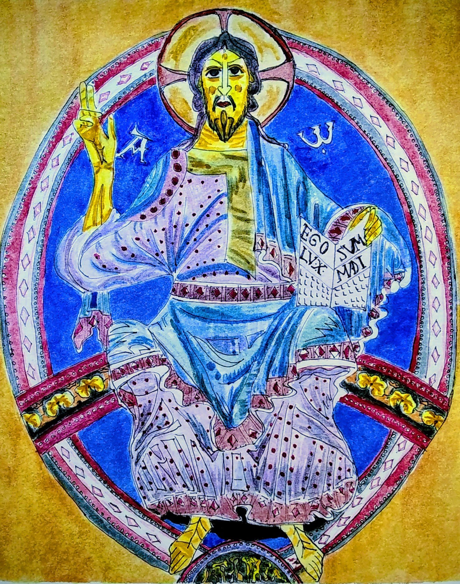 #Arte sacro#Acuarela Religiosa#Pantocrator#Romanico#Taull#Pintura Original