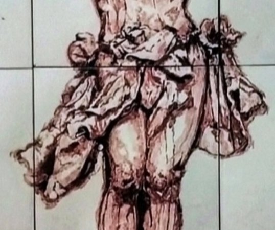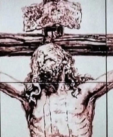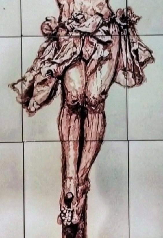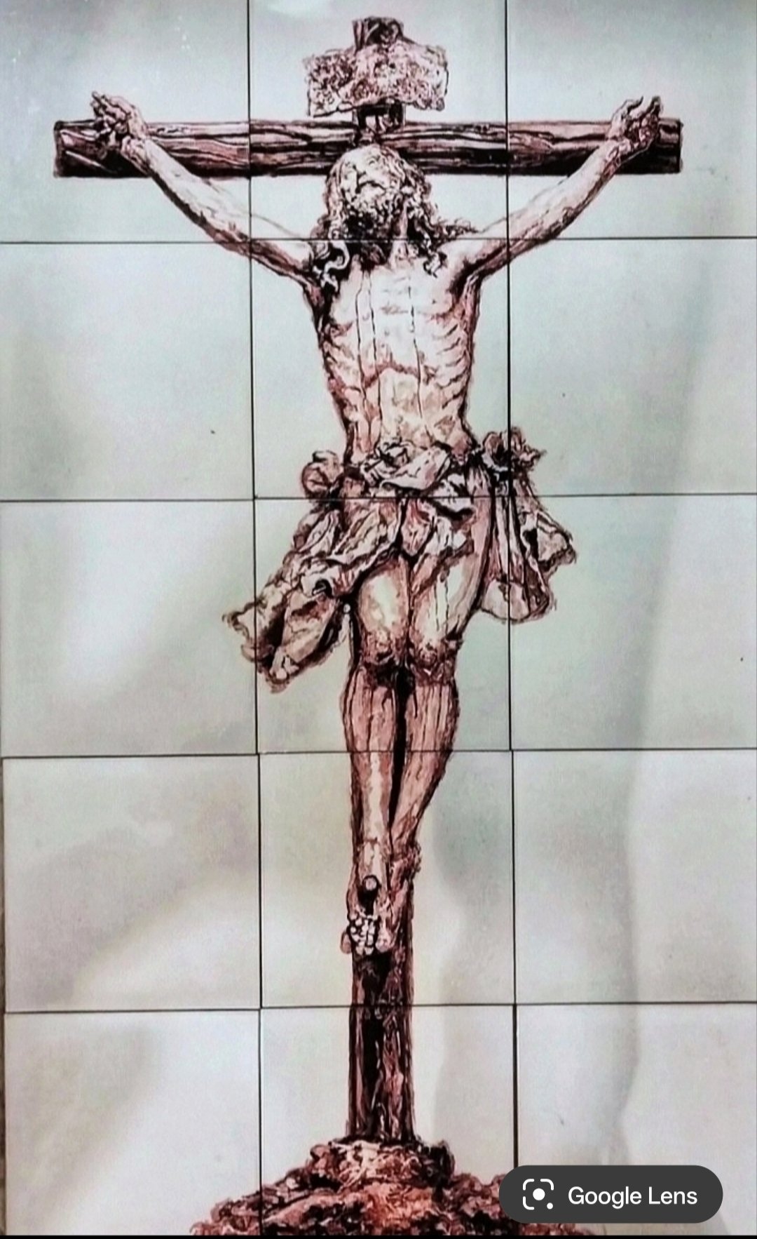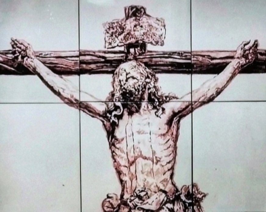 Retablo ceramico Cristo de la Expiración, pieza formada por azulejos de 20X20 cm., en un formato total de 100X60 cm. Pintura cerámica original a mano alzada.