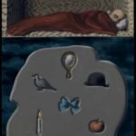 La influencia de Dalí es patente en la obra “Delirios de grandeza” en donde el torso femenino a manera de figuritas rusas que encajan una dentro de la otra en un espacio abierto de un cielo fragmentado por sólidos de nubes y una vela encendida . La mujer, la madre? Huérfano, lleno de incógnitas y seguramente impregnadas de dolor de su infancia , la estética y belleza de la fémina acerca a Magritte a pensarlo como uno que contempla con cierta rareza a la mujer en su totalidad. Esta idea de la muerte la interioriza el pintor en “El balcón de Manet” (1949) donde sustituye cada uno de los personajes por ataúdes que aun contemplan desde un balcón la cotidianidad quizá sin ser observados. También presente la muerte en obra más temprana de1928 ”El durmiente en su nicho” ,llena de misterio ,solemnidad y signos como pictogramas incrustados en una paleta de textura visual que recuerda una estela funeraria de la antigüedad .